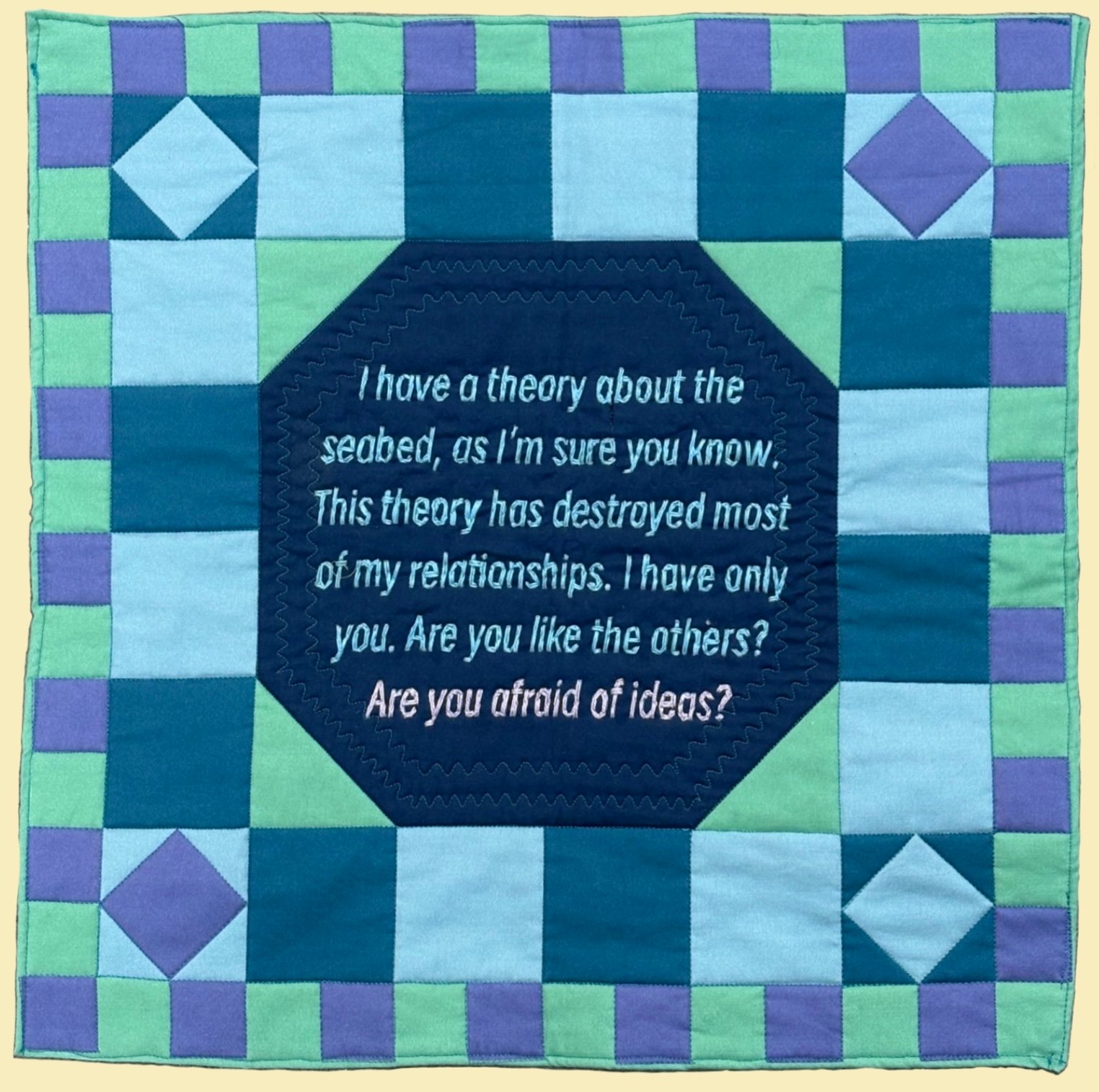 Machine quilted & hand-sewn letters.
