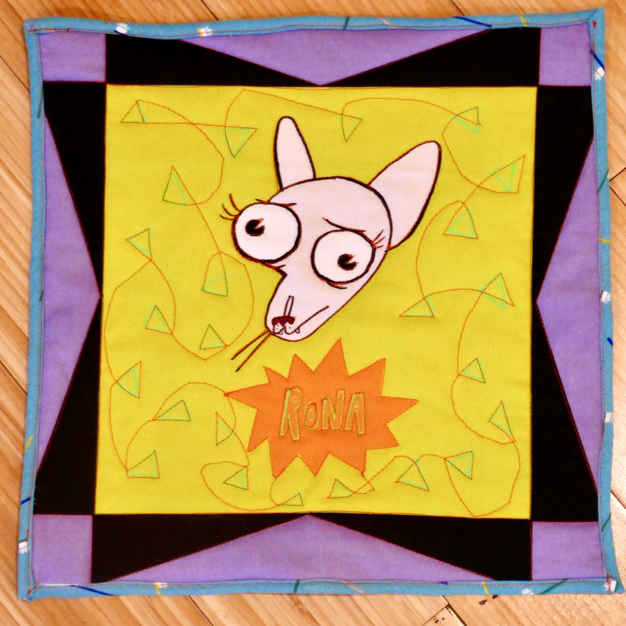 your very own Rona mini quilt (about 11.75" sq) for hanging or display or tucking in your pet lizard.