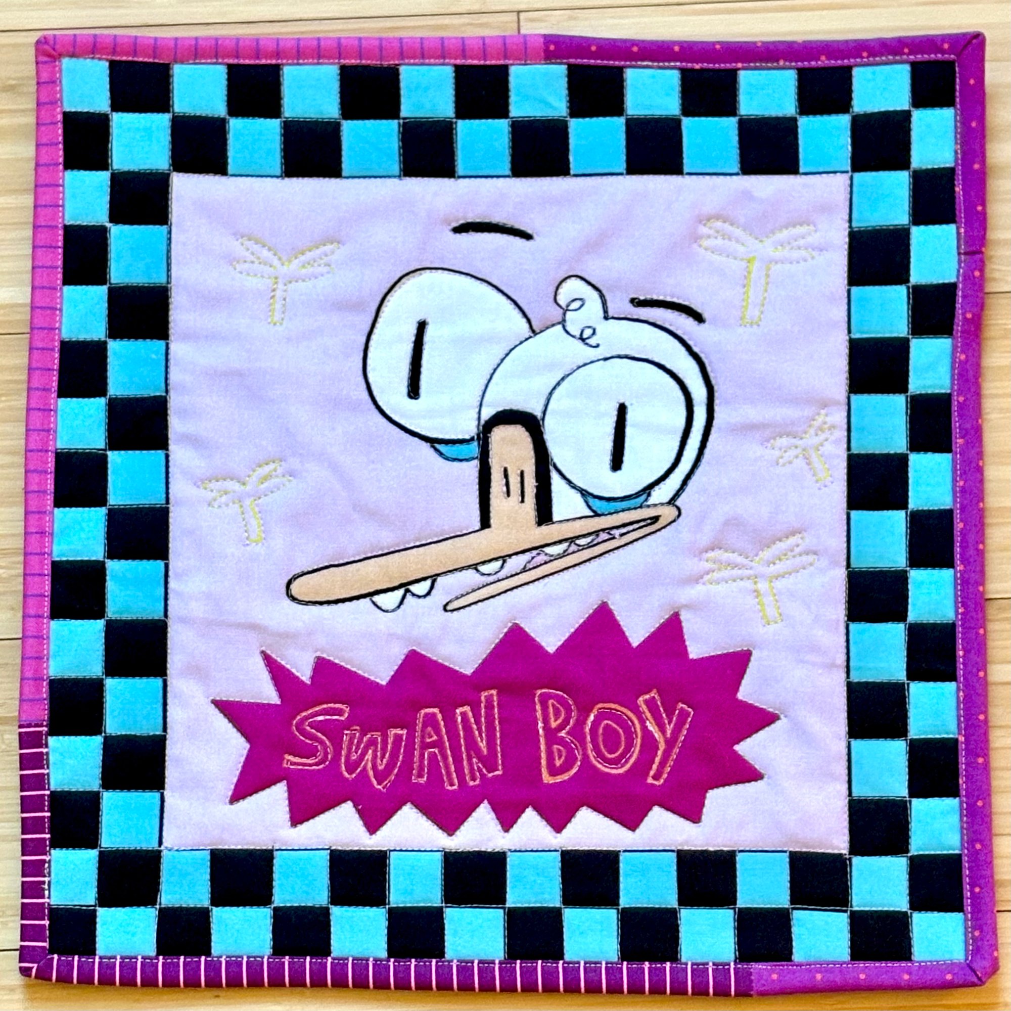 your very own Swan Boy mini quilt (about 11.5" sq) for hanging or display or tucking in your pet lizard.